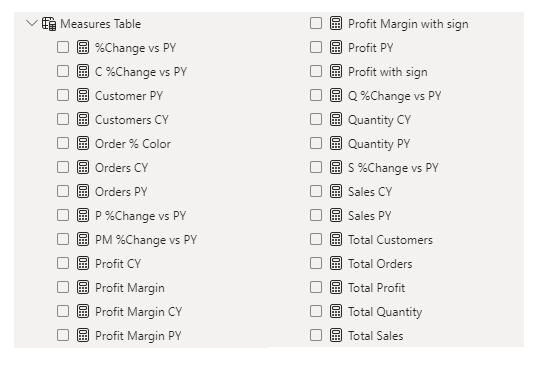 The list of calculated measures is available below and includes key information on revenue, profit, orders, returns, and more.