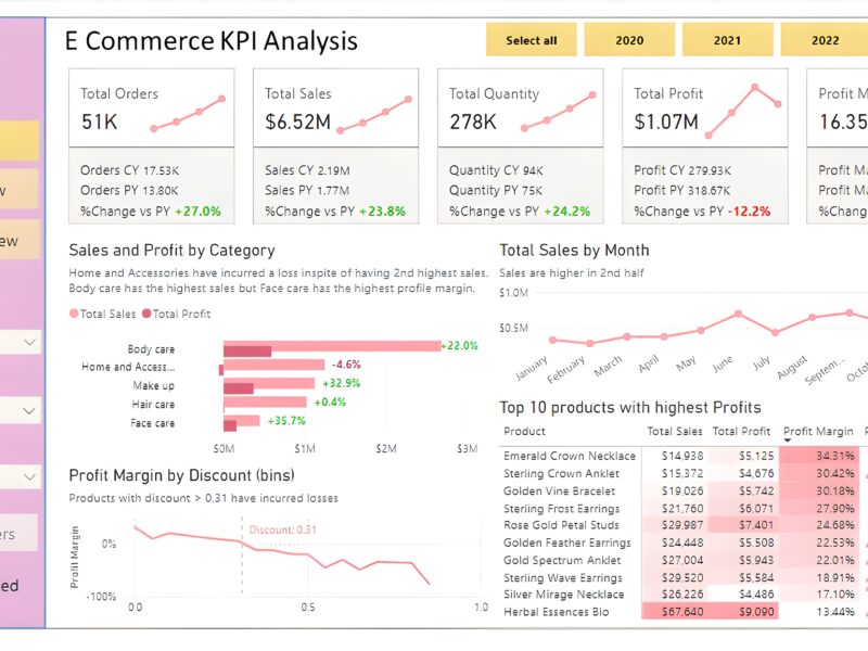 - Track KPIs (orders, sales, profit, quantity, profit margin)